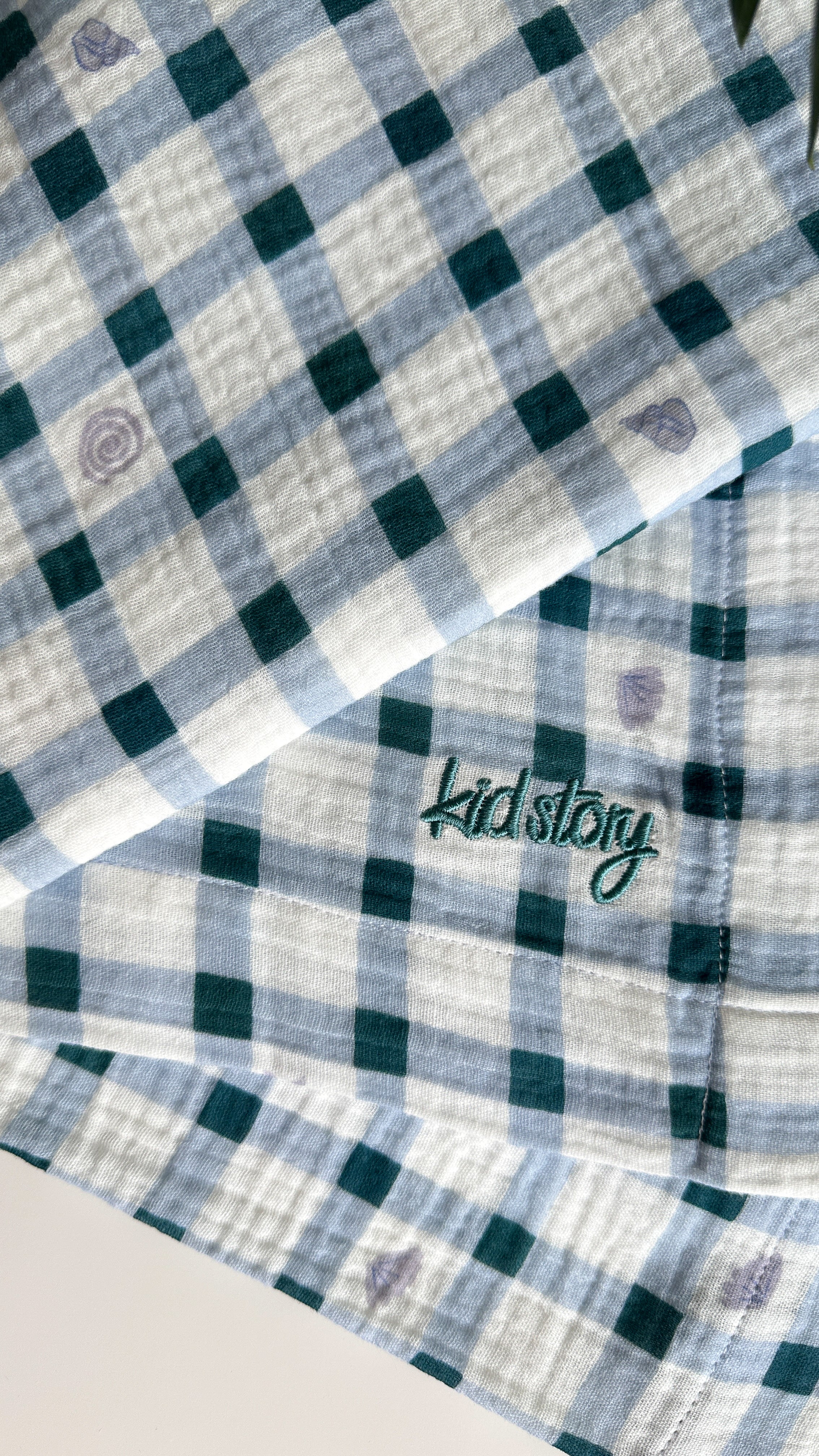 The swaddle is decorated with a unique, hypoallergenic seashell print, designed exclusively for Kidstory.